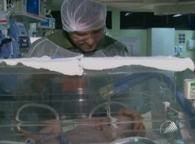 pais da recém-nascida Larissa, nascida há 12 dias em Feira de Santana,